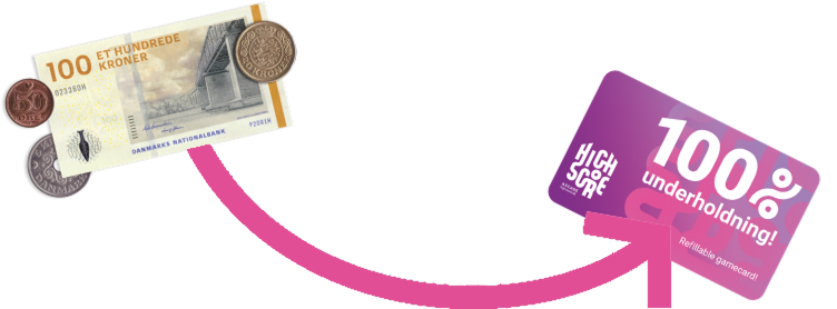 You need your HIGHSCORE ARCADE GAME card to start our games. On this card, you can load the credits you need to play with.